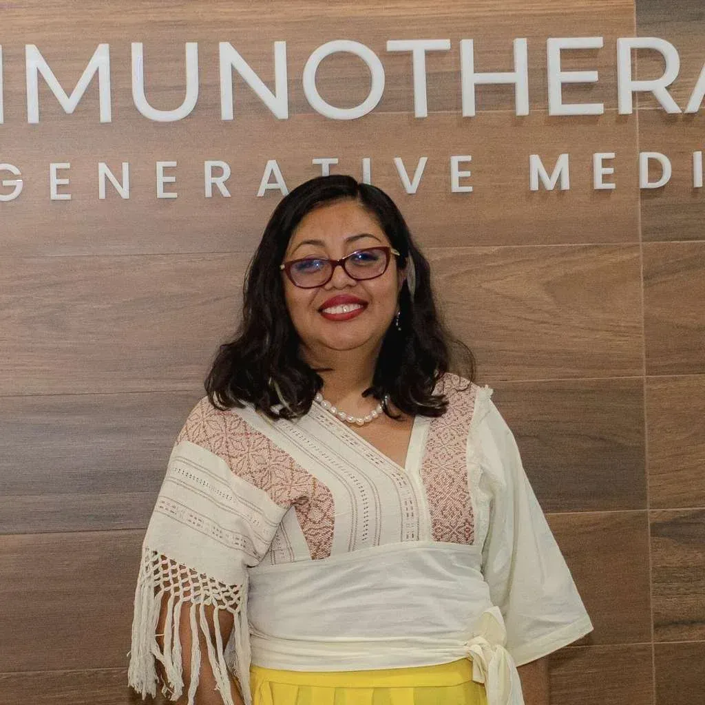 Especialista también en terapias regenerativas con células madre mesenquimales (MSCs), ha desarrollado estudios preclínicos y clínicos enfocados en regeneración de tejidos, incluyendo aplicaciones en periodoncia traslacional y enfermedades crónicas. Docente e investigadora en la UNAM (FES Zaragoza), ha dirigido tesis, cuenta con diversas patentes y promueve prácticas científicas rigurosas en biología y bioquímica.